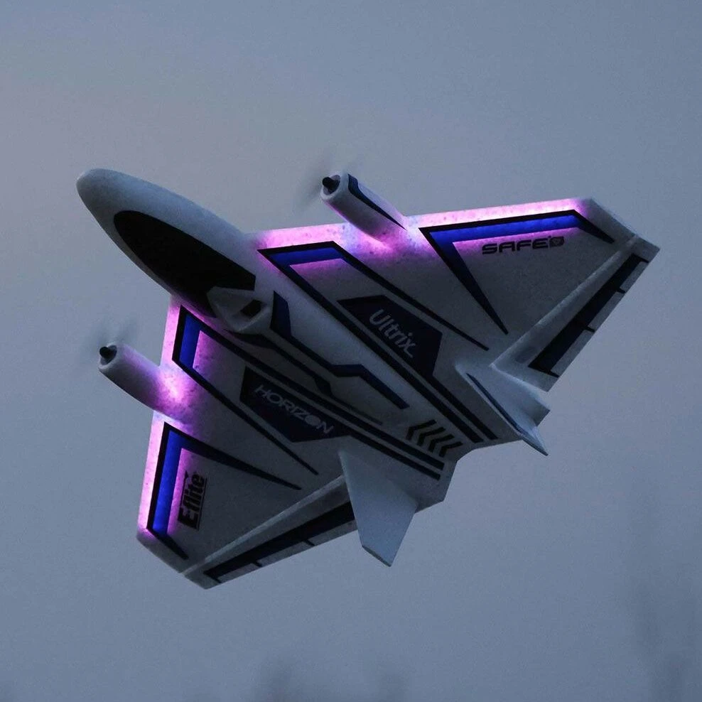 The Ultrixâ„¢ 600mm is a smooth handling, extremely versatile delta wing aircraft with aerobatic and 3D capabilities you’d never expect based on its looks alone. Twin brushless motors deliver an incredible power-to-weight ratio that offers good speed, plenty of power to hover, and unlimited vertical performance. Differential thrust adds the ability to perform harriers, flat spins, and more amazing aerobatics. And extremely durable EPP construction makes it one of the toughest E-flite® models ever! An enlarged version of the popular UMXâ„¢ Ultrix, the Ultrix 600mm is easier to see and handles windy conditions even better, aided by exclusive AS3X® technology that works behind the scenes to smooth out the effects of wind and turbulence to deliver a locked-in feel. Optional-use SAFE® Select technology makes it easy even for low-time pilots to fly successfully in large yards, parks, sports fields, RC flying, and other fields. The included optional-use fixed nose wheel makes it possible to taxi, takeoff, and land on smooth surfaces. Or you can leave the nose wheel off for more speed and vertical performance plus easy hand launches over and landings on grass. Fully factory-assembled, the Ultrix 600mm is ready to fly within minutes of opening the box. Just add a 3S 800–850+mAh battery and bind it to a compatible Spektrumâ„¢ DSMX®/DSM2® equipped transmitter. It even delivers a variety of real-time power system related telemetry data – including battery voltage, current, and more – to compatible transmitters. You can also install the optional LED light kit (sold separately) for improved visibility during daylight conditions and to fly at night!