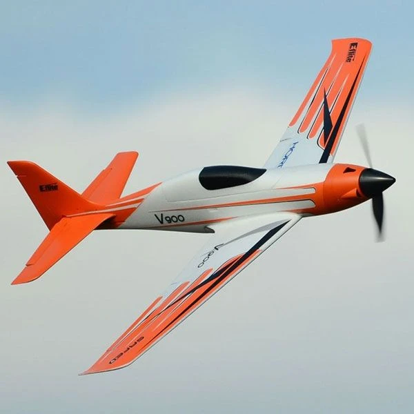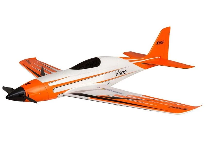 The V900™ high-speed sport airplane is the fastest prop-driven E-flite® airplane yet! Right out of the box it can reach top speeds of 120+ MPH on 4S, and even 100+ MPH on 3S, without the need for upgrades or prop changes. It’s designed to whip heads by flying fast and looking good with slick aerodynamics, composite reinforced EPO construction and a vibrant trim scheme that stands out on the ground and in the air.