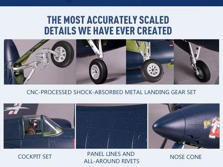 The Tiger Cat features the latest locked-rotor mode E-retract system with overcurrent protection, the refined scaled (NC-processed metal landing gear set for resisting those not-too-perfect landings. A 62mm diameter front wheel and 84mm diameter rear wheels for taking off and landing on both paved and grass surfaces.