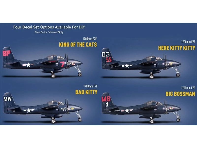 FMS Models F7F Tigercat 1700mm PNP Electric Airplane with Reflex, Blue