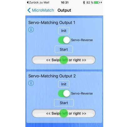 The MicroMatch includes a servo reverse function which changes the direction of rotation of the servos with a single click. This is ideal for elevator servos which are installed as a mirror-image pair, allowing them to be operated using just one channel. Further applications are twin rudders or steerable nosewheels.
